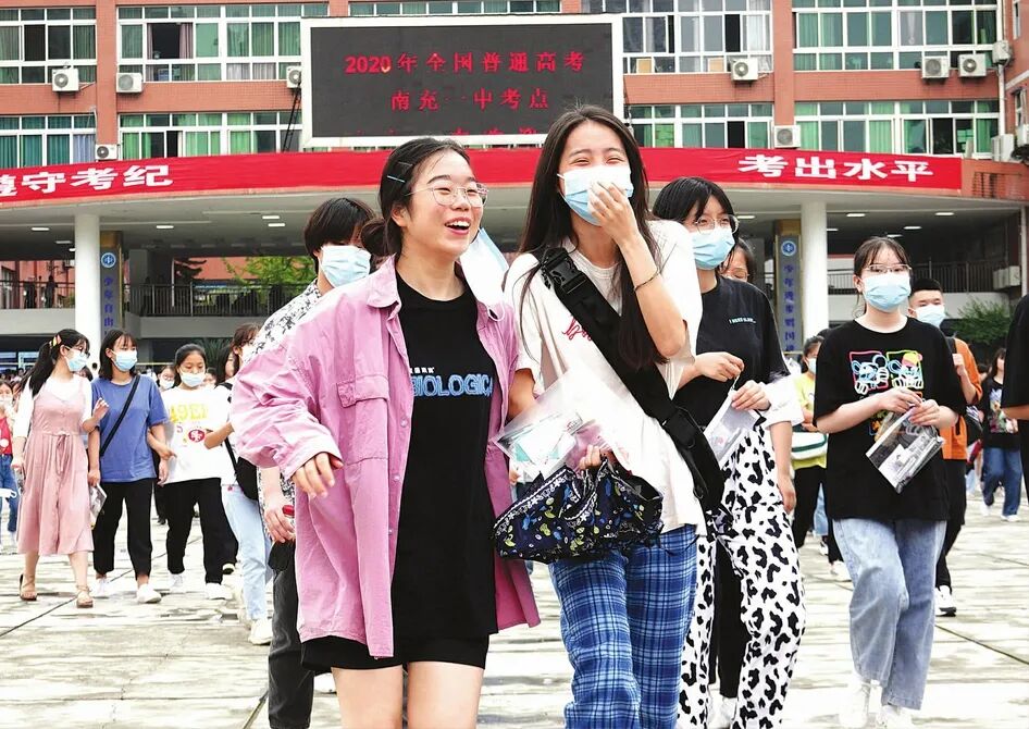 2020年高考,南充市共设考点22个,4.4万余名考生参加高考。7月7日上午,记者在南充一中新校区考点看到,该考点高考有序进行, 学生戴着口罩进入考生通道, 经过测量体温后进入考场。考场周边交通秩序井然,服务于高考的各行各业热情助考, 考生家长及教师也在考点门前为考生加油。(记者 梁洪源 摄)