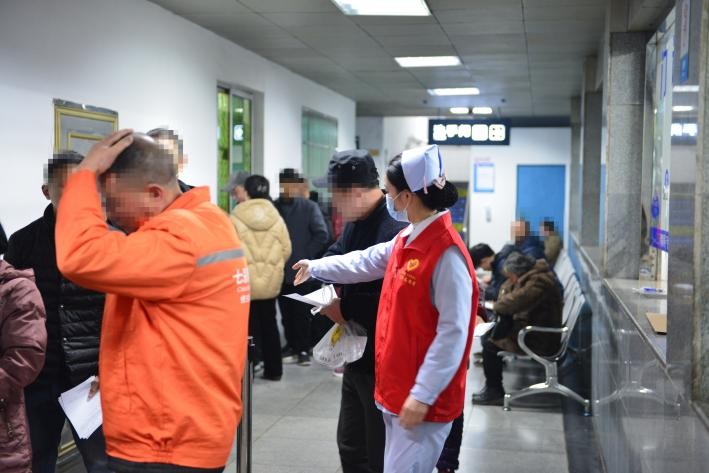 据统计,从1月下旬开始,医院门诊人次就不停攀升,日诊高达3000余人次,为应对这种高压情况,门诊部专门增派了导医人员和志愿者,在门诊大厅、各楼层候诊厅等显眼位置为患者提供引导和帮助,维持正常就诊秩序。导医和志愿者热情耐心,不仅详细解答患者的疑问,还协助患者完成挂号、签到、缴费等流程,大大提高了就诊效率,减少了患者的等待时间。